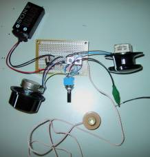 とりあえず、実体配線図の上半分(高周波回路)を組み立てよう(図8)。もし自信がなければ、この段階で一度、きちんと動くかどうか調べておいた方がよい(図9)。大丈夫そうなら、下半分の低周波増幅回路を組み立てよう。昼間は電波が弱いので、夕方以降にうまく動くかどうかチェックしよう。アパートなどでは、2-3mぐらいのビニル線をアンテナとしてつなぎ、ベランダの外などに出してやると電波を受信しやすい。なお、アンテナ線は絶対にコンセントに入れてはいけない(最悪、死にます)。