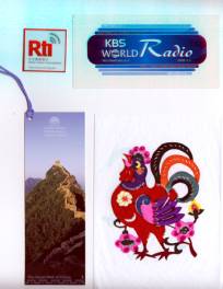 さて、皆さんが作った短波ラジオは、うまく動いただろうか。もしうまく海外の放送が受信できたなら、放送局に「受信報告書」を送ってみよう。「受信報告」というのは、要するに「そちらの放送を聴きましたよ」というお知らせのことで、もしその中身が放送されたものと同じだと放送局が認めると、「ベリカード」(受信証明書)というものを送ってくれることが多い。ベリカードは「たしかに、うちの放送局の電波を受信したことを証明します」という放送局からの証明書なので、もし自由研究なんかでラジオを作ったときに、これをもらっておけば、自作ラジオを使って、その局の電波をたしかに受信できたという証明になるというわけだ。カードは普通、郵便で外国から送られてくることが多く、最新の番組表と専用受信報告書用紙を同封してくれる局もある。サービスが良い放送局だと、カードだけではなく、シールだの切り絵だのといった宣伝用アイテムや、場合によっては雑誌や語学番組の教科書まで送ってくれることもある(図11)。