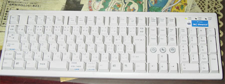 (私にとっては)不要なショートカットキーがたくさんあることと、形が変なの で、必要以上に面積を使ってしまうのが難点だが、このあたりは感覚のわかれ るところだろう。