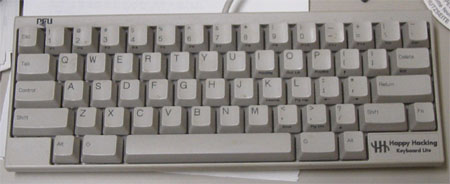 上にあるHappy Hacking Keyboardの最高級モデル。 キーが静電容量方式になり、より快適なキータッチになっている。 調子にのって無刻印モデルを購入。見栄だけの世界かもしれないけど。