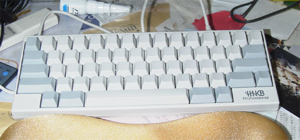 ぷらっとホームオリジナルのキーボード。 カーソルキーがある分、HHKより一回り大きい。 キーはやはり軽めだと思うが悪くなく、長時間の使用で疲れない。 仕事場で使ってるキーボード。