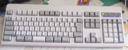 HHKがUNIX系キーボードを祖先にしているなら、こちらは データセンタなどでの打ちこみ用キーボードが元になっている。 ハードにキーボードを使う人のための工夫は随所でなされている。キーの方式 としてはメンブレン式、メカニカル式のいずれでもない静電容量方式をとって いる。押下げ圧は、中指で打つキーは55gに対して小指で打つキーには30gとい うように調整されており、使い易い(全部のキーを30gにしたものもあるらしい)。