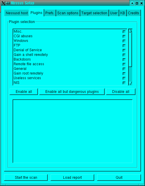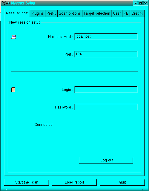 まず、rootでnessusdを起動する(-Dオプションをつけるとよい)。