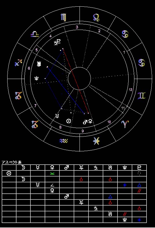 ハウス9に金星と火星が入っていることから、深遠な世界について深く考えることを好む一方、それが唯一の真実と思い込んで他人の意見を認めないところもある。